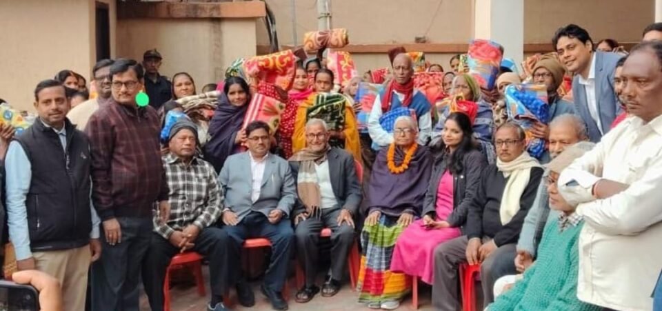 भोजपुर:चित्रांश समिति द्वारा निर्धन लोगों में कंबल का हुआ वितरण।