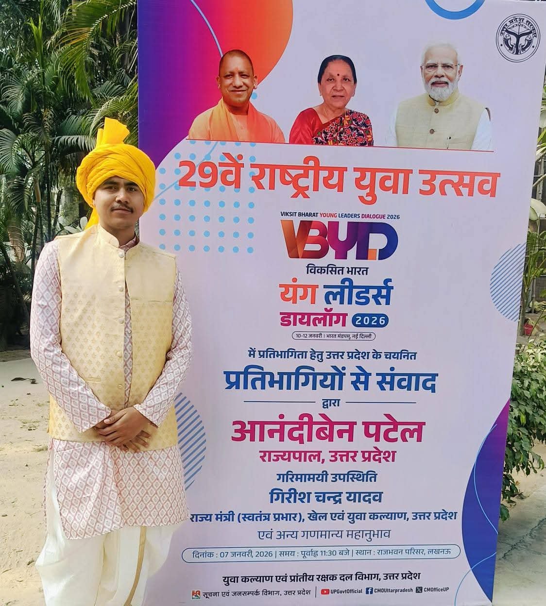 RKTV NEWS/बागपत(उत्तर प्रदेश)14 जनवरी।संघर्ष, संकल्प और सपनों की सशक्त मिसाल बने बागपत के अमन कुमार ने राष्ट्रीय स्तर पर जिले और प्रदेश का मान बढ़ाया है। युवा कार्यक्रम एवं खेल मंत्रालय, भारत सरकार की ओर से 10 से 12 जनवरी 2026 तक नई दिल्ली में आयोजित 29वें राष्ट्रीय युवा महोत्सव एवं विकसित भारत यंग लीडर्स डायलॉग–2026 में अमन कुमार ने चार चरणों की प्रक्रिया पूर्ण कर 50 लाख युवाओं में से चयनित होकर बागपत से एकमात्र प्रतिभागी के रूप में भाग लेते हुए न केवल जिले के लाखों युवाओं का प्रतिनिधित्व किया बल्कि पूरे उत्तर प्रदेश के 79 चयनित युवाओं की अगुवाई भी की।