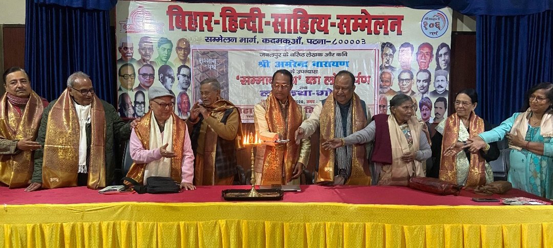 साहित्य सम्मेलन में वरिष्ठ साहित्यकार अमरेन्द्र नारायण की पुस्तक का हुआ लोकार्पण, हुई लघु-कथा-गोष्ठी।