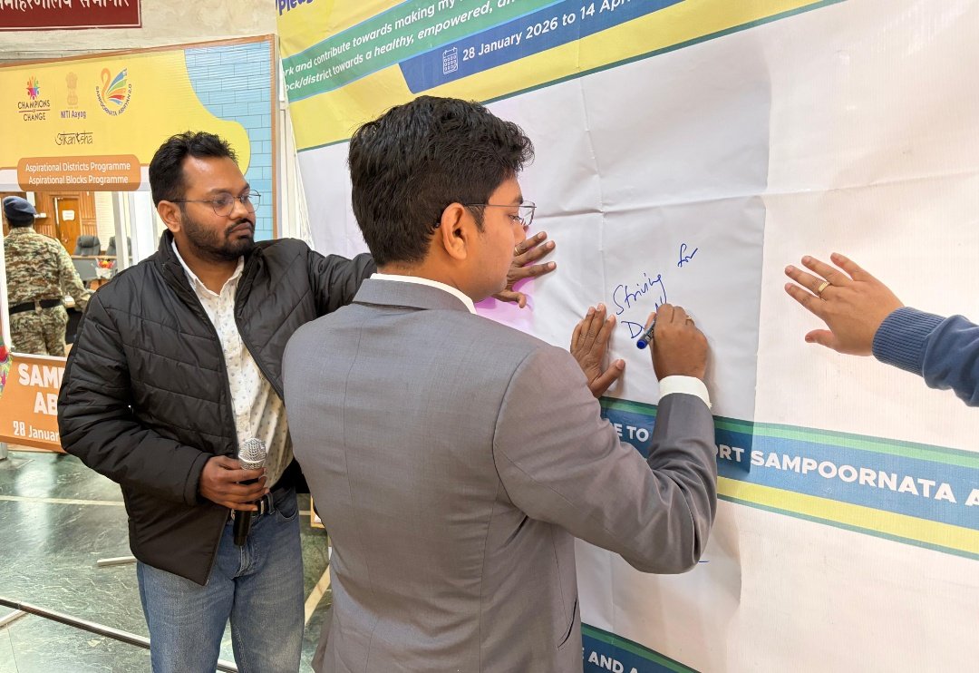 शपथ के माध्यम से सभी विभागों ने यह संकल्प लिया कि अभियान के अंतर्गत निर्धारित सभी इंडिकेटरों को प्राथमिकता देते हुए शत-प्रतिशत लक्ष्य की प्राप्ति के लिए पूर्ण निष्ठा एवं समन्वय के साथ कार्य किया जाएगा।शपथ कार्यक्रम के उपरांत उपायुक्त ने हस्ताक्षर अभियान की विधिवत शुरुआत की तथा अभियान के प्रति अपनी प्रतिबद्धता दर्शाते हुए सेल्फी लेकर उपस्थित अधिकारियों एवं कर्मियों का उत्साहवर्धन किया।
