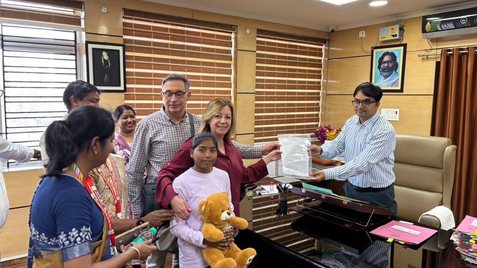 RKTV NEWS/रामगढ़(झारखंड)02 मार्च।जिला बाल संरक्षण इकाई, रामगढ़ के माध्यम से आज 02 मार्च 2026 को रामगढ़ जिला स्थित गैर सरकारी संस्था डिवाइन ओंकार मिशन, टायर मोड़, रामगढ़ के बालिका गृह से 12 वर्षीय बालिका ज्योति कुमारी को इटली निवासी दंपत्ति क्लाउडिया पेद्रिनी एवं उनकी धर्मपत्नी डोमिंगा सेल्विनी द्वारा विधिवत गोद लिया गया।